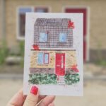 Eerst maak ik een uniek aquarel schilderij (huisportret) van jouw nieuwe woning. Deze scan ik zorgvuldig in en ontwerp ik op maat tot verhuiskaarten.