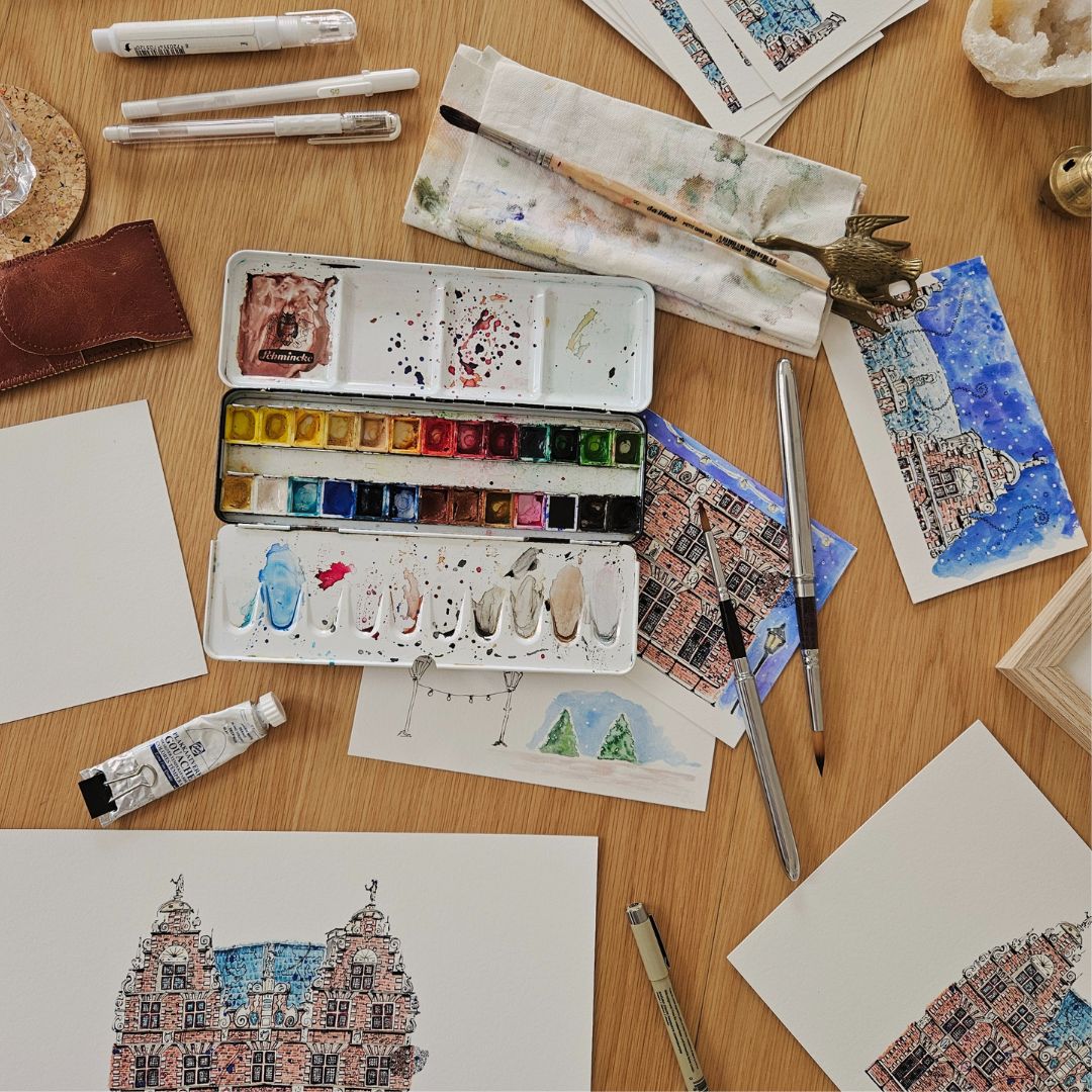 Ik ga nooit op reis zonder mijn aquarel-set!