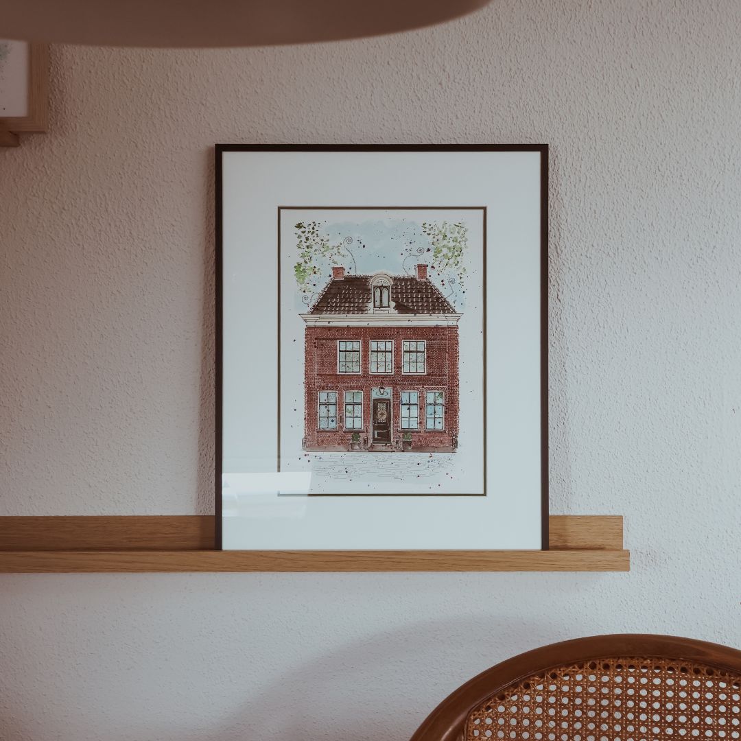 Jessie had eerder al het geboortekaartje voor onze dochter ontworpen en daar waren we toen ook enorm blij mee. Ook dit keer heeft ze onze verwachtingen overtroffen. Het schilderij van ons huis is werkelijk prachtig geworden.